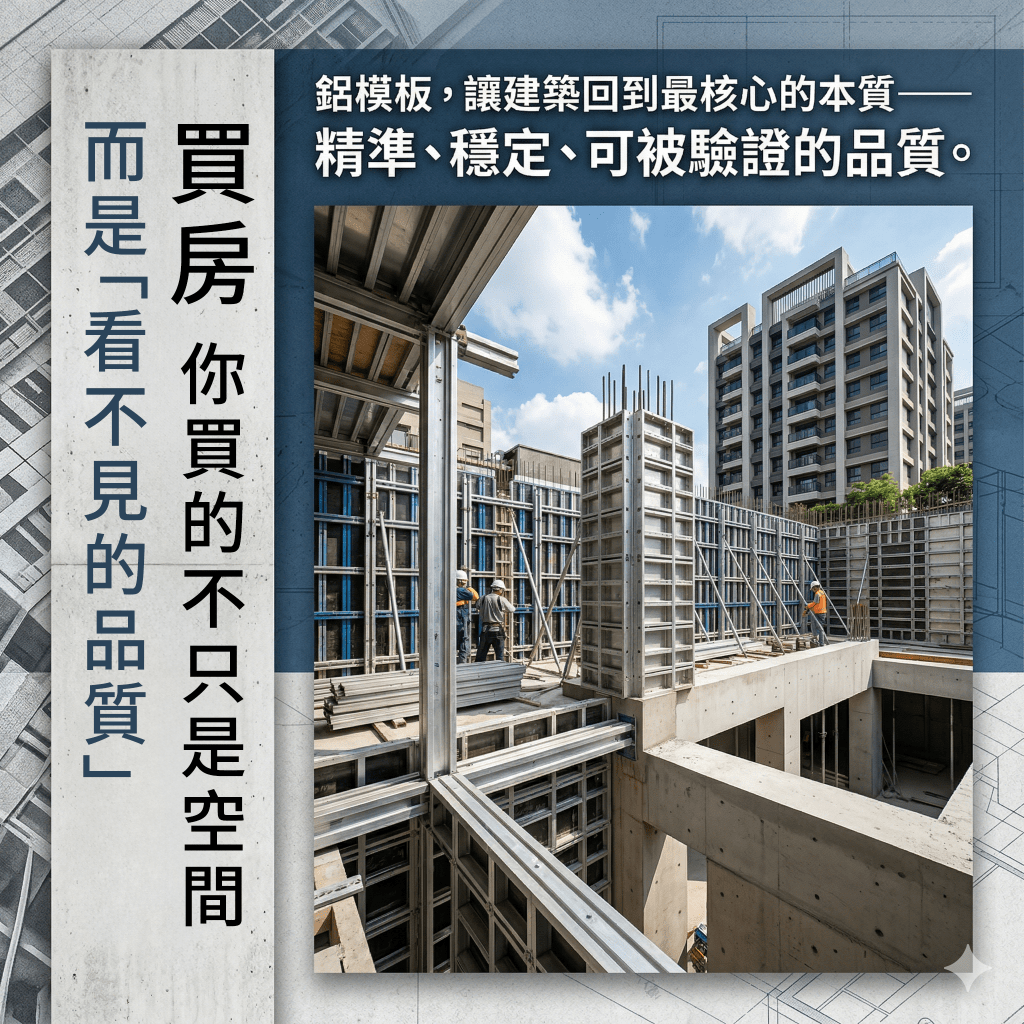 從模板設計、模組配置,到現場組裝與澆築控制,每一個環節都需要高度專業與經驗累積。這也是為什麼鋁模板工法,至今仍無法被快速複製。