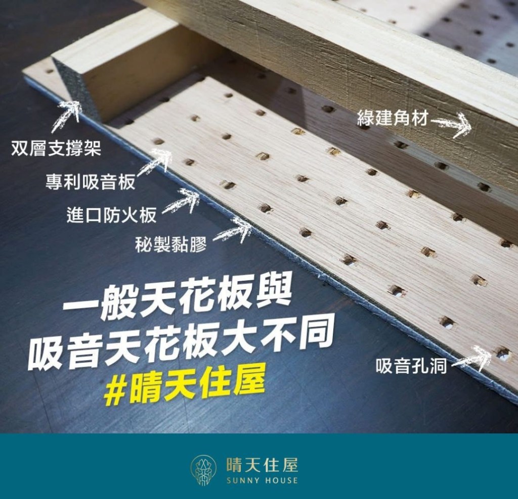 在多數人容易忽略的「天花板設計」上,【晴天住屋】投入長時間研發,推出「新專利吸音天花板」,讓空間品質從根本提升。